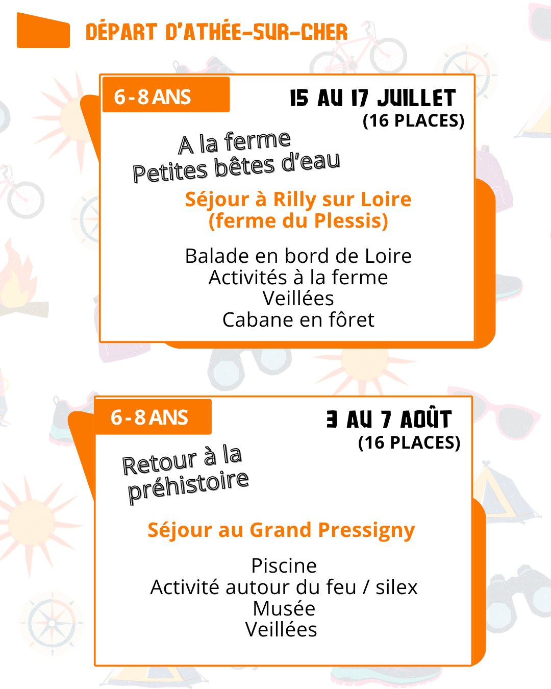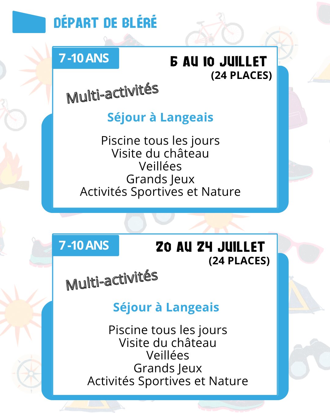- Bléré : du 6 au 31 juillet puis du 17 au 28 août (+ Accueil Passerelle pour les 11/13ans)