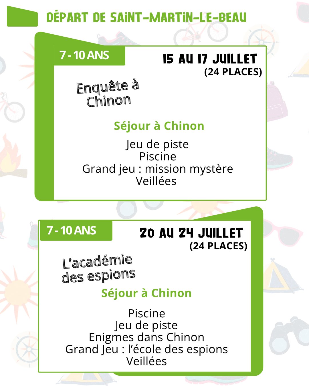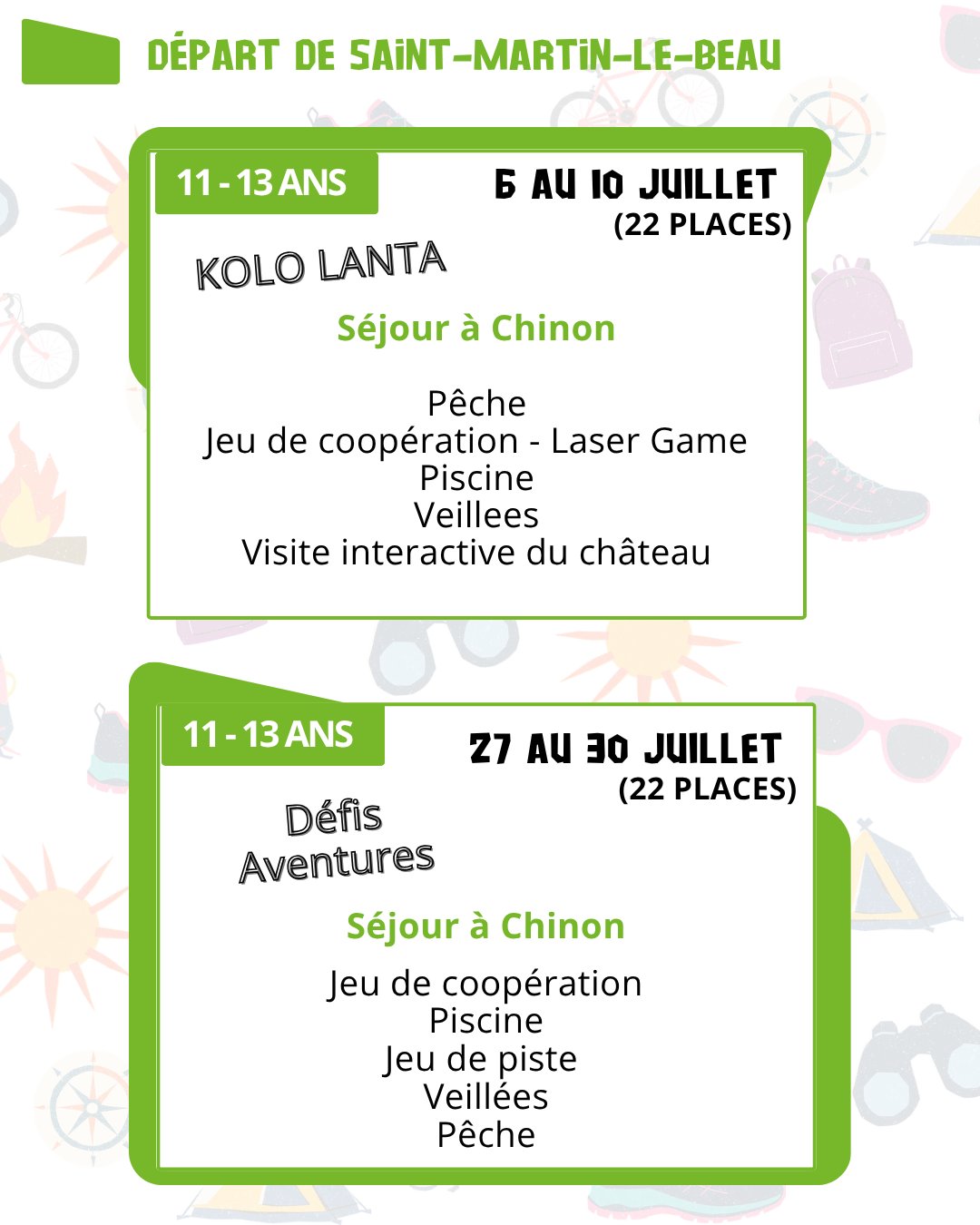- Saint-Martin-le-Beau : du 6 au 31 juillet (+ Accueil Passerelle pour les 11/13ans)
