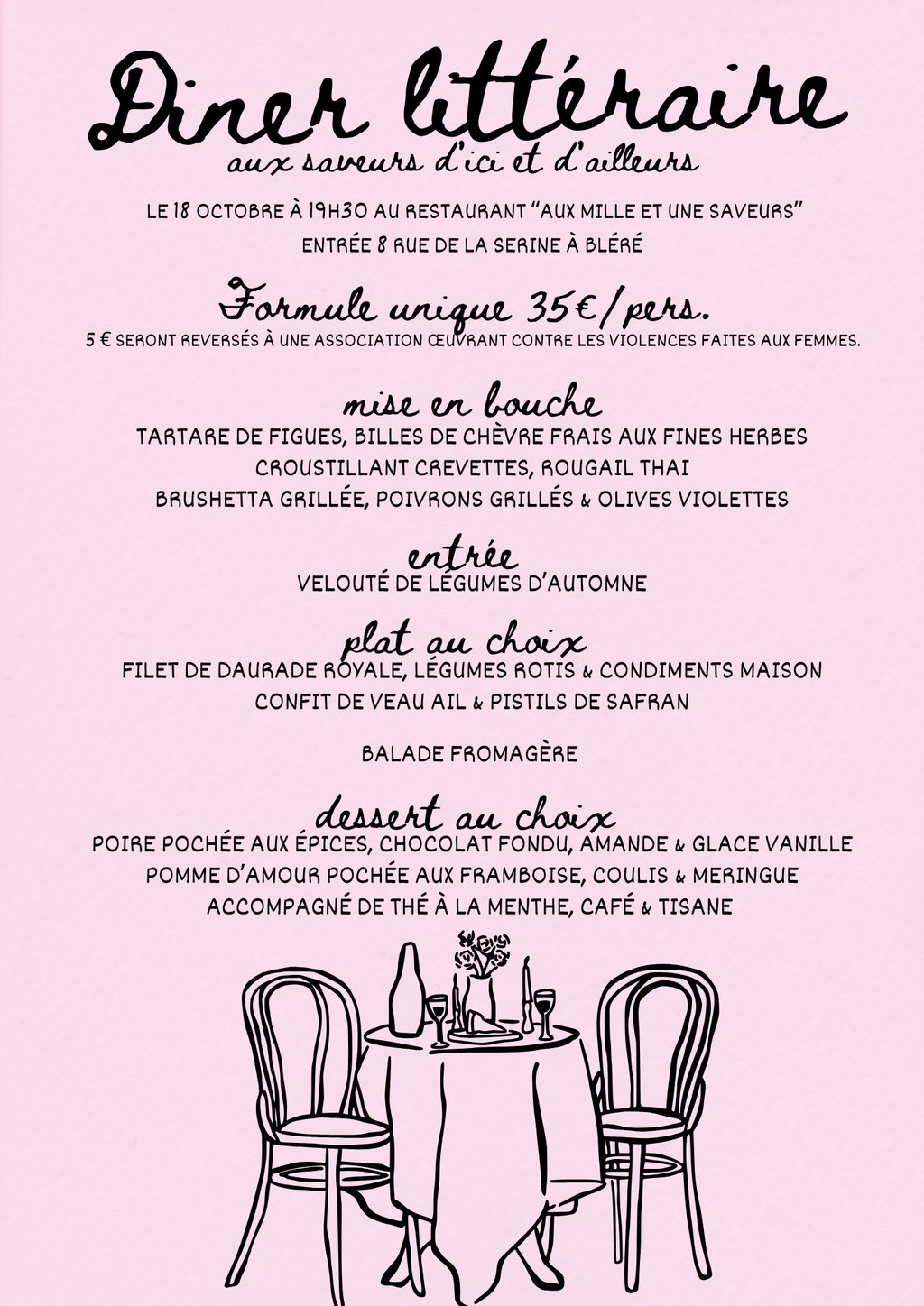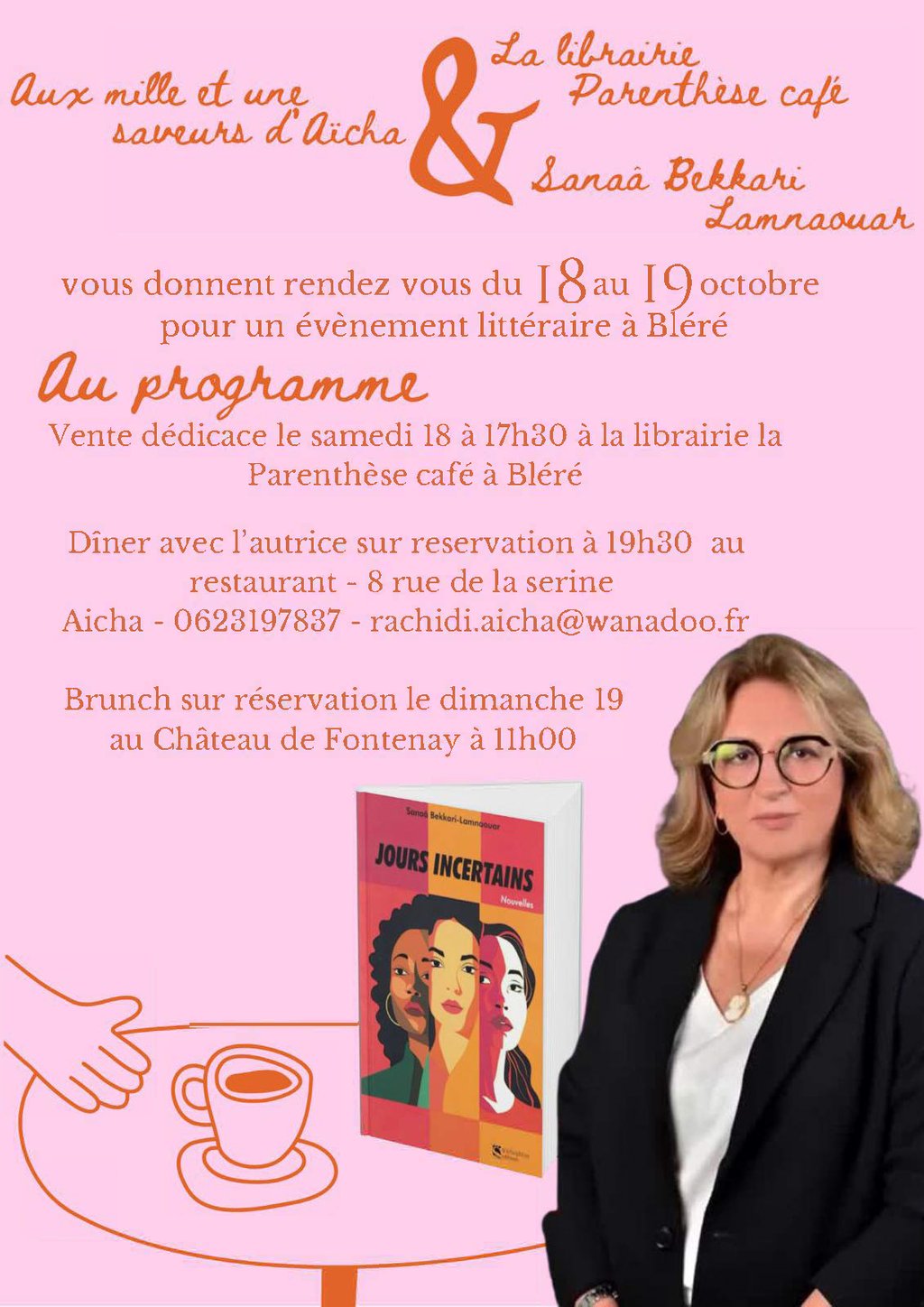 Rencontre et dédicace littéraire en partenariat avec le restaurant Aux mille et une saveurs d'Aïcha et la Librairie La Parenthèse de Bléré.