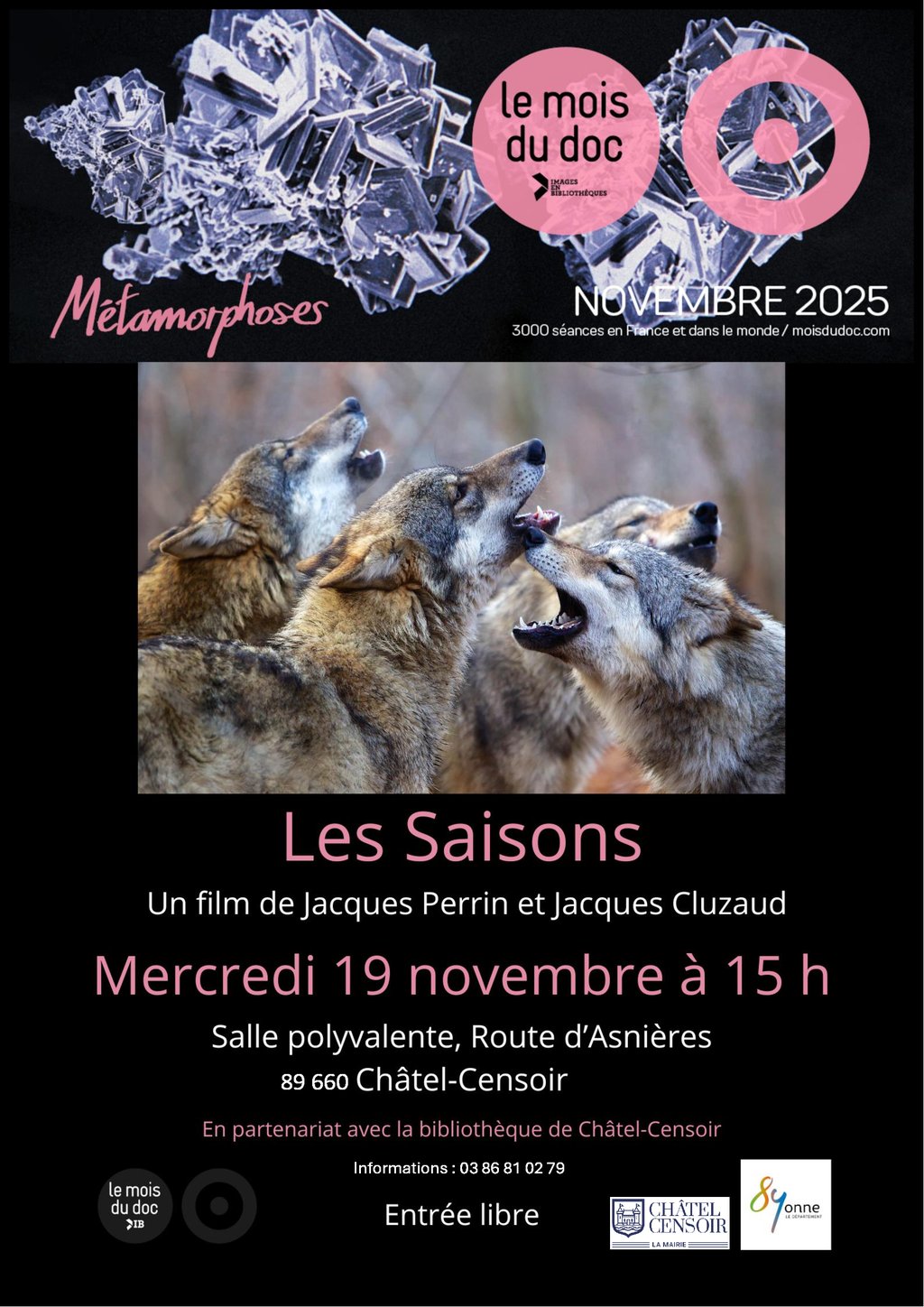 Projection du film "Les saisons" de Jacques Perrin et Jacques Cluzaud. Entrée libre.