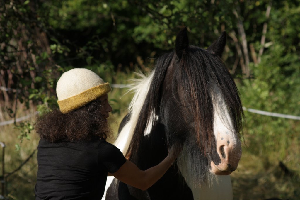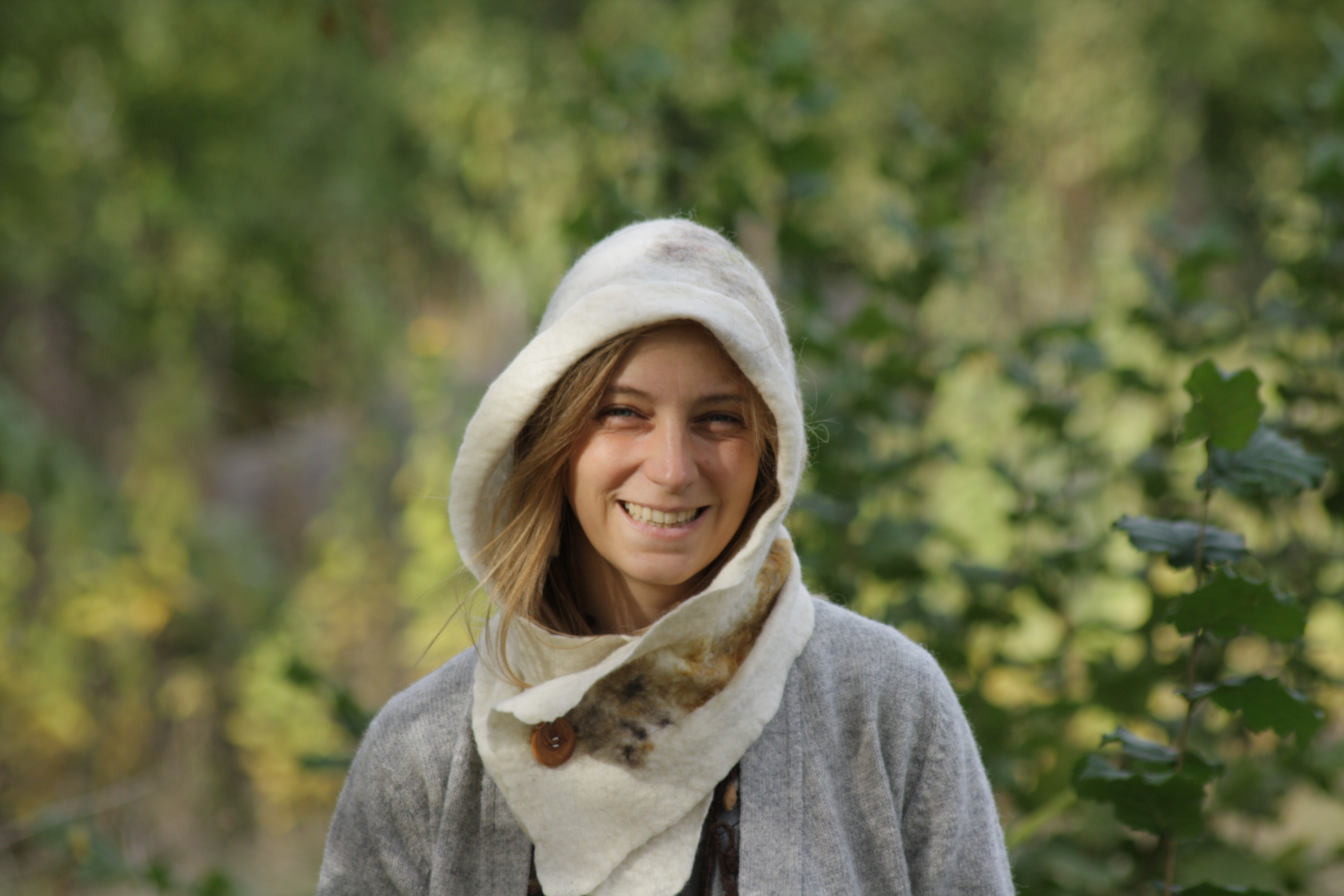 Découverte des propriétés de la laine, préparation, cardage et feutrage pour la confection d'une capuche ou d'un bonnet. Feutrage à la main. Travail avec de la laine de moutons locaux et teintures végétales.