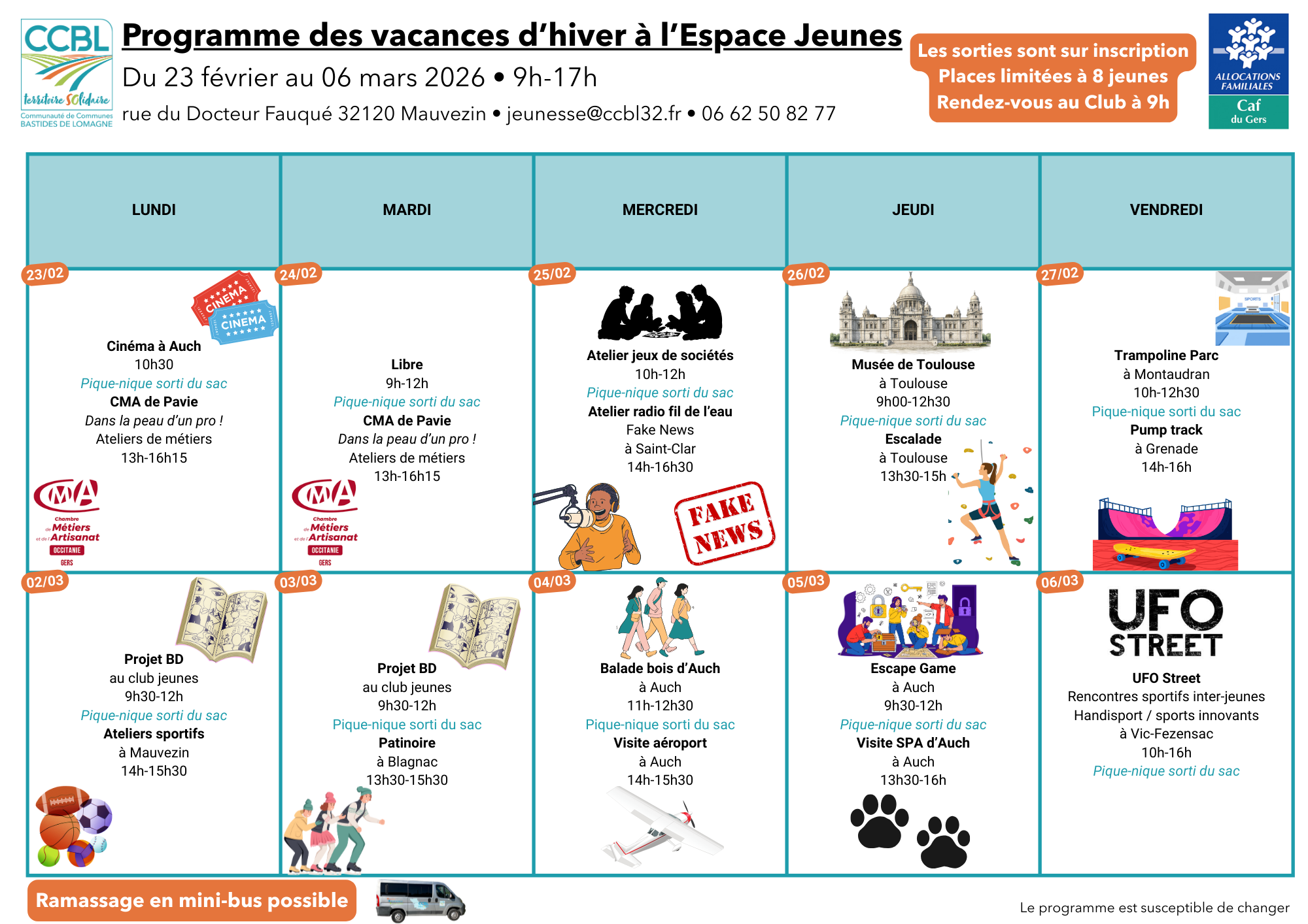 - vacances d'hiver (du 23/02/2026 au 06/03/2026)