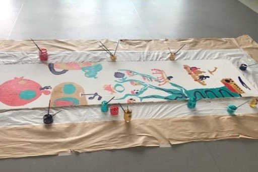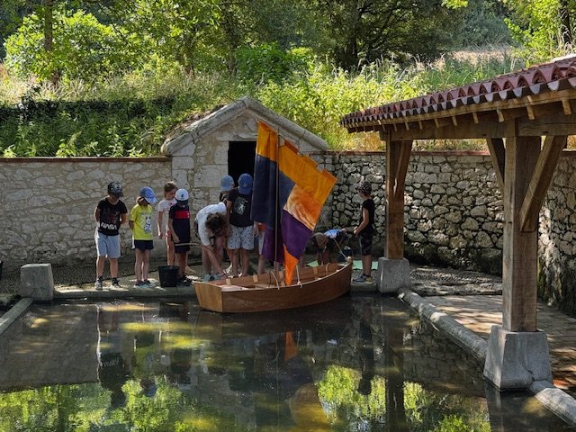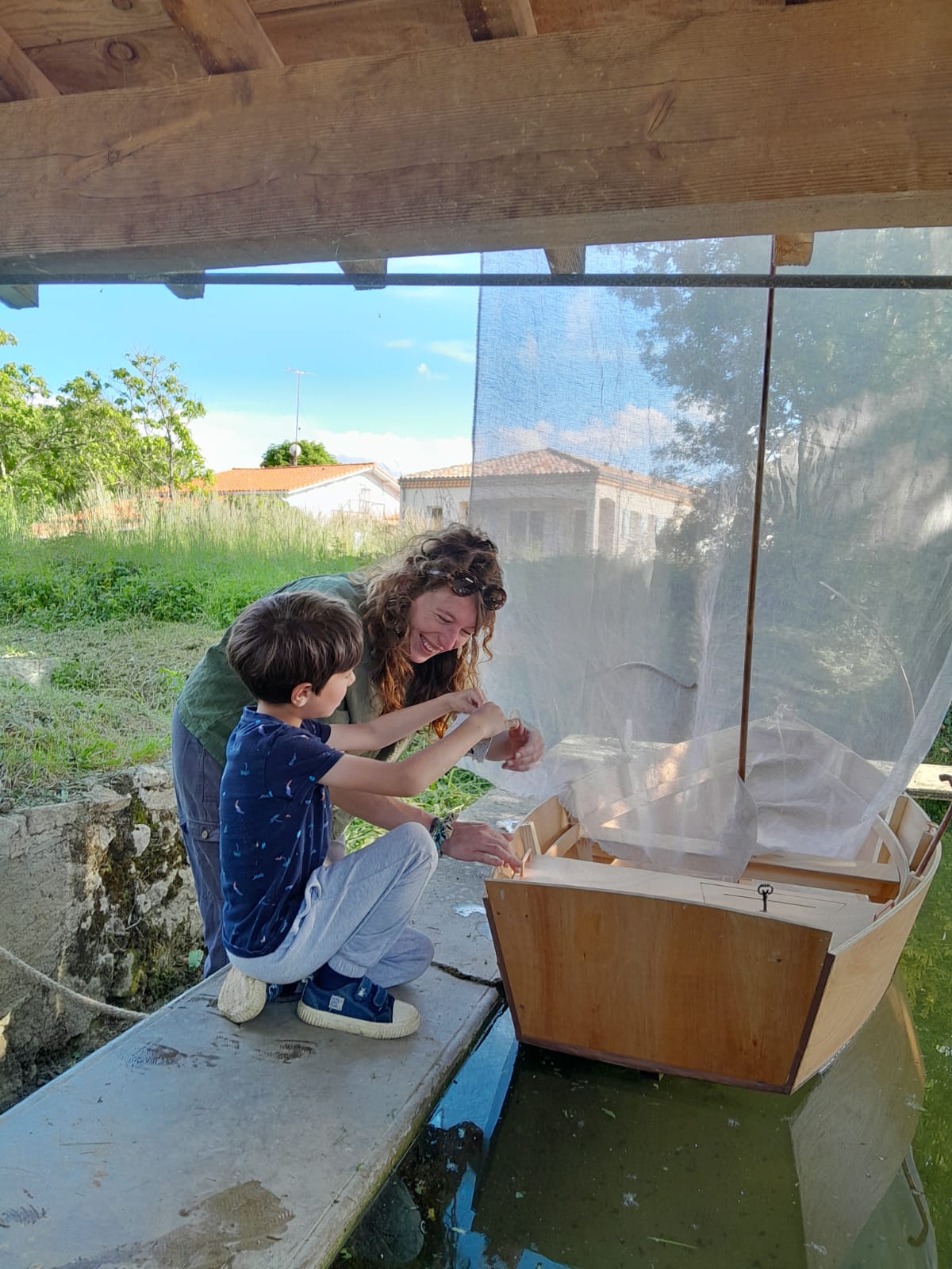 Munie d’une boîte aux lettres, à chaque étape, la barque s’est enrichie des objets, dessins et récits réalisés par les habitantes et les habitants de tous âges lors d’ateliers avec l’artiste : papiers fabriqués à la main, écritures de lettres aux êtres vivants, impressions de symboles sur la grand-voile .