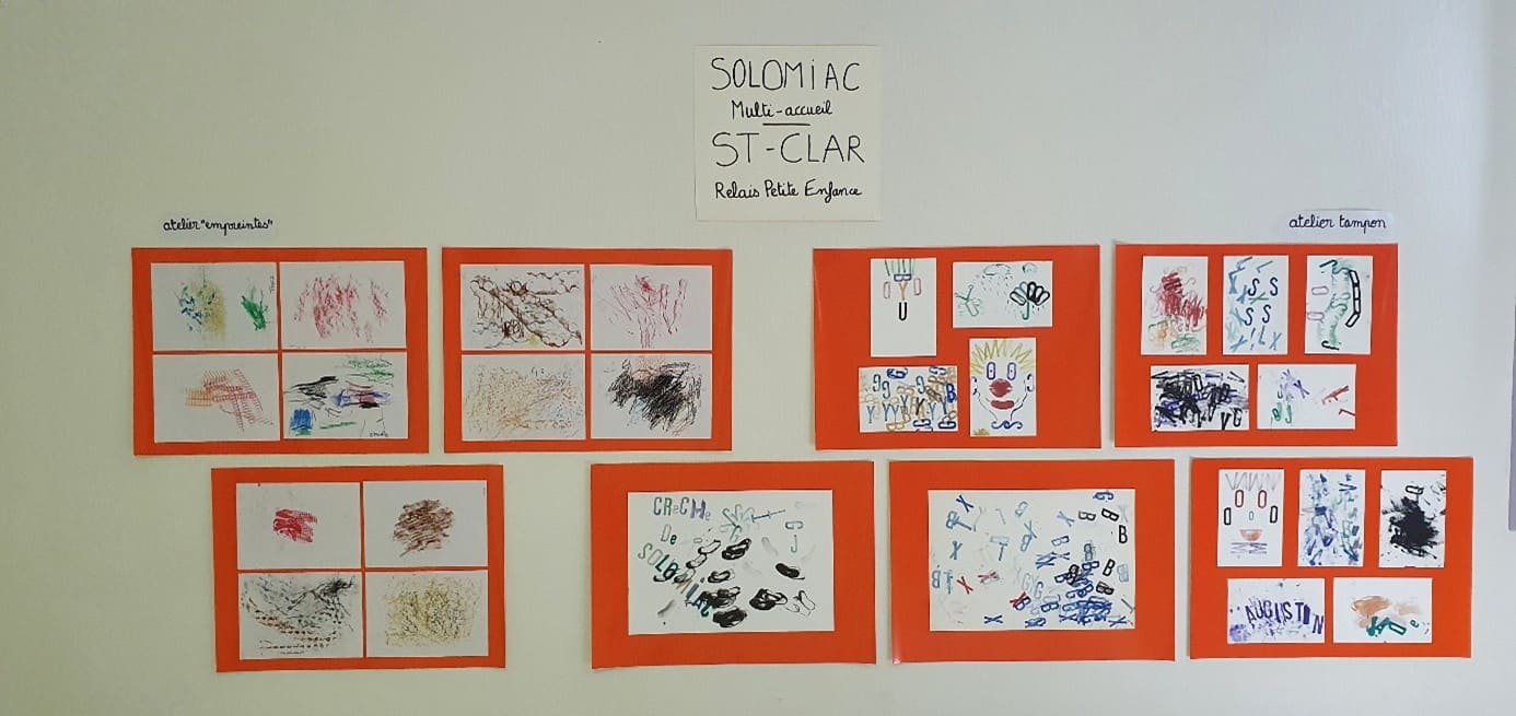 Parce qu’il n’y a pas d’âge pour être artiste, le projet La trace sous toutes ses formes s’est adressé aux tout-petits de 0 à 6 ans et à leur famille. Les multi-accueils, les Relais Petite Enfance et la Lieu d’Accueil Enfants-Parents ont accueilli les artistes des Ateliers Charrette de Sarrant pour initier les enfants à différentes pratiques artistiques : gravure sur tetrapak, tampon, sérigraphie et empreintes.