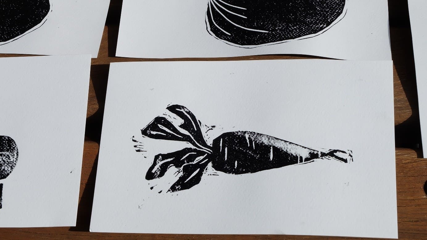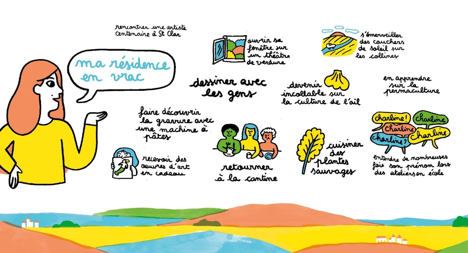 Fin 2021, l'illustratrice Charline Giquel est partie à la rencontre des habitants de la Communauté de Communes de Bastides de Lomagne (CCBL) lors d'une résidence artistique. En lien avec le Projet Alimentaire Territorial de la CCBL, l'artiste a questionné les publics rencontrés sur leur rapport à la cuisine et leur patrimoine culinaire, à travers de nombreux ateliers de dessin, peinture et de gravure.