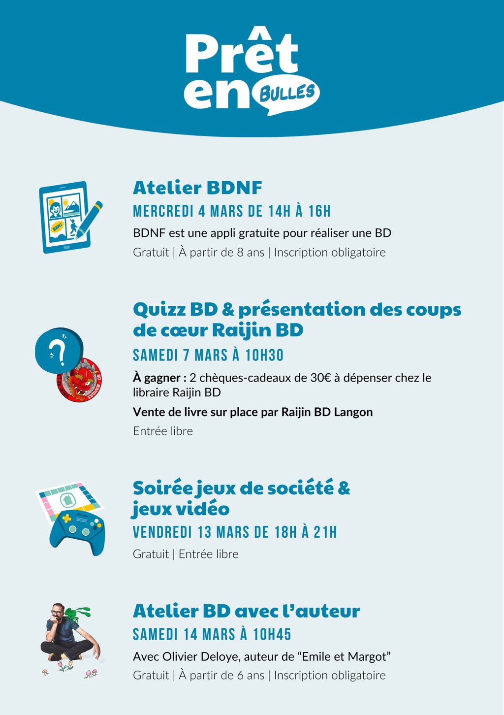 Petits et grands amateurs de bande dessinée, rendez-vous à la bibliothèque intercommunale de Portets du 4 au 14 mars !