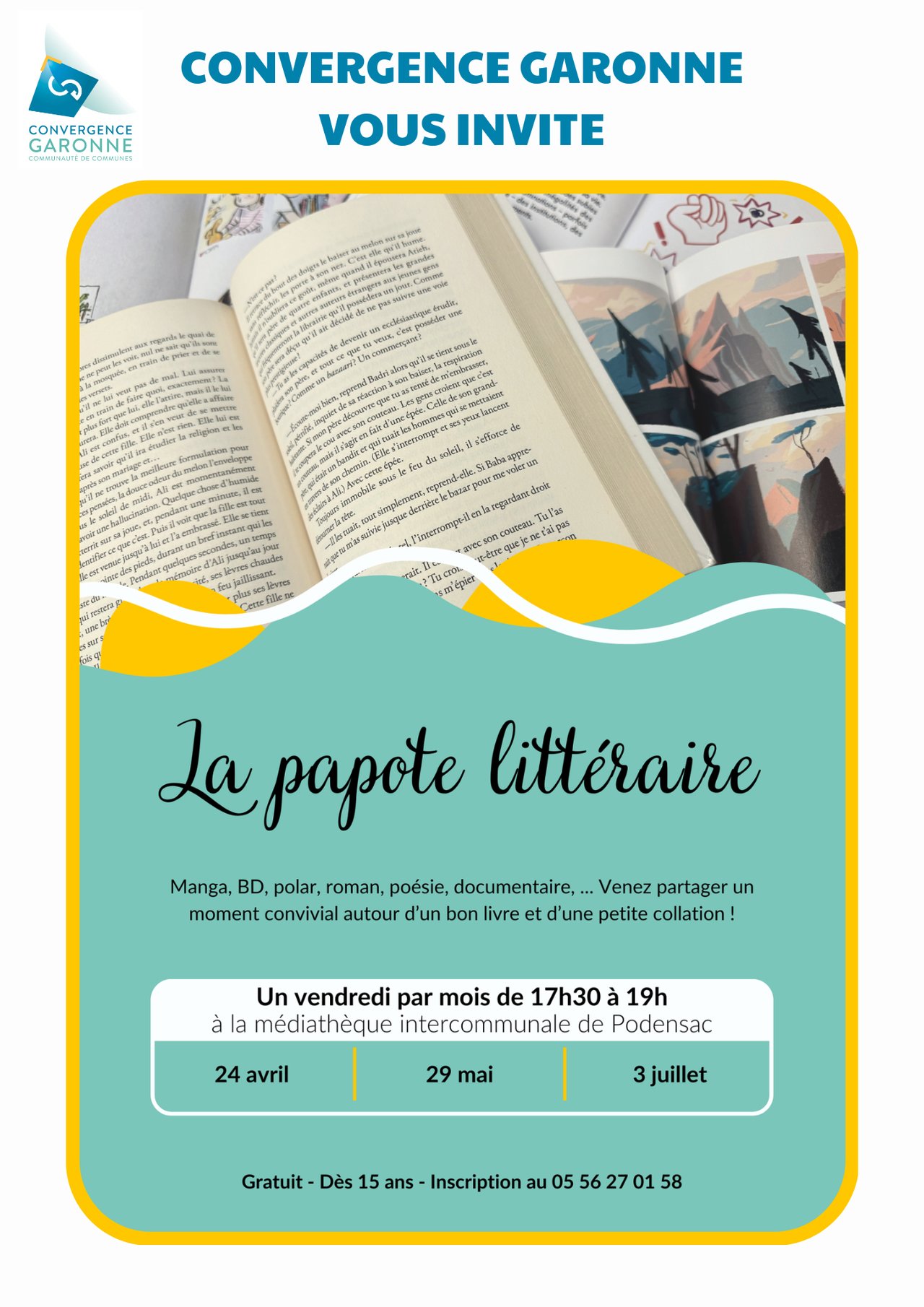 Convergence Garonne vous invite à la Papote littéraire : un moment d’échange autour des romans, polars, BD et mangas, dans une ambiance conviviale et détendue.