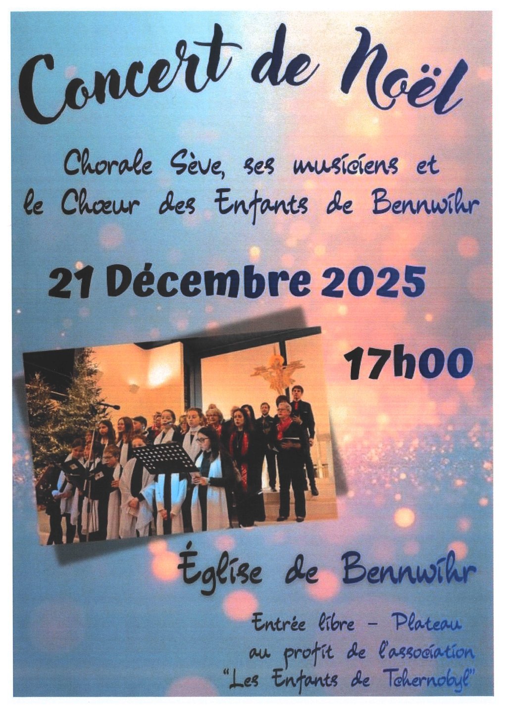 La Chorale Sève, ses musiciens et le Chœur des Enfants de Bennwihr vous donnent rendez-vous pour leur concert de Noël